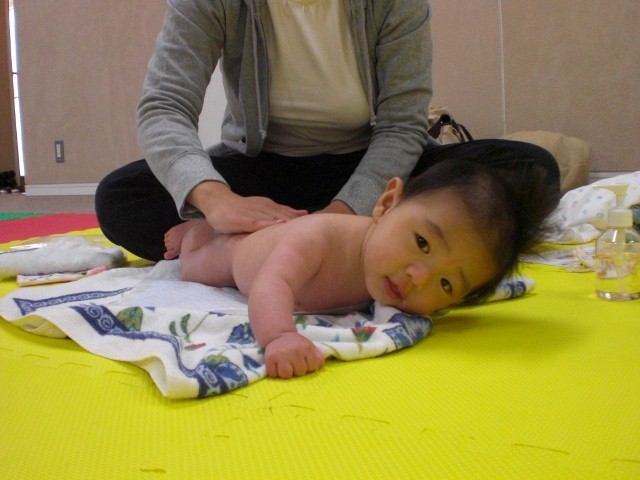 さて、ベビーマッサージは最終日なのでお背中までの全身をマッサージ。
