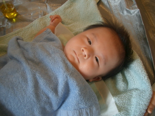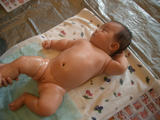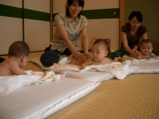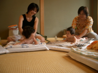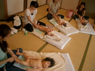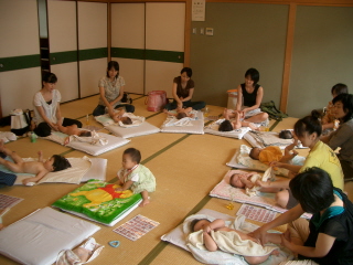 主役の赤ちゃん達は気持ちよさそうにママのマッサージを受け、