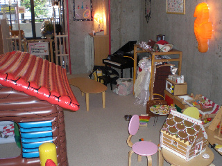 店内には食事スペースは明るくモダンな感じでまとめられていてキッズスペースには木製のおもちゃがたくさん!